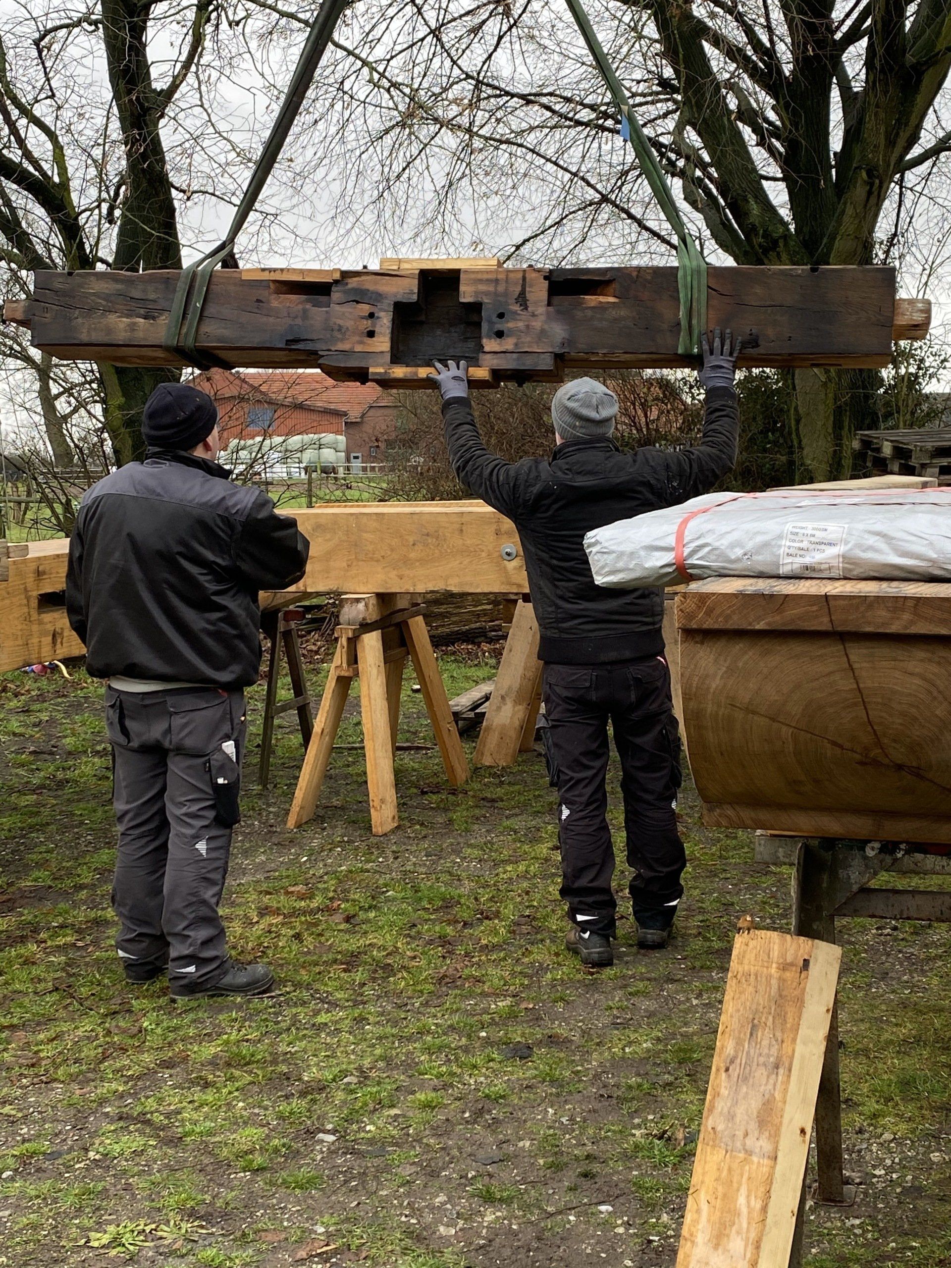 Warten auf die Eichenstämme für die Windmühle Labbus